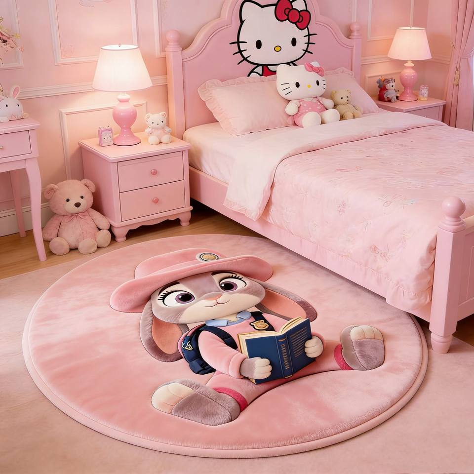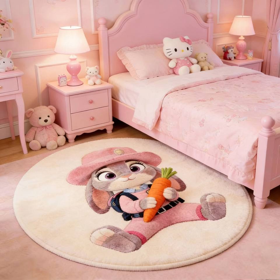 พรมกลมลายการ์ตูนสัตว์น่ารัก วาน ซินหลง สำหรับตกแต่งห้องนอนเด็กผู้หญิง ป้องกันการลื่น ผลิตจากวัสดุเลียนแบบขนแคชเมียร์ นุ่มสบาย รุ่นสปริง 2026