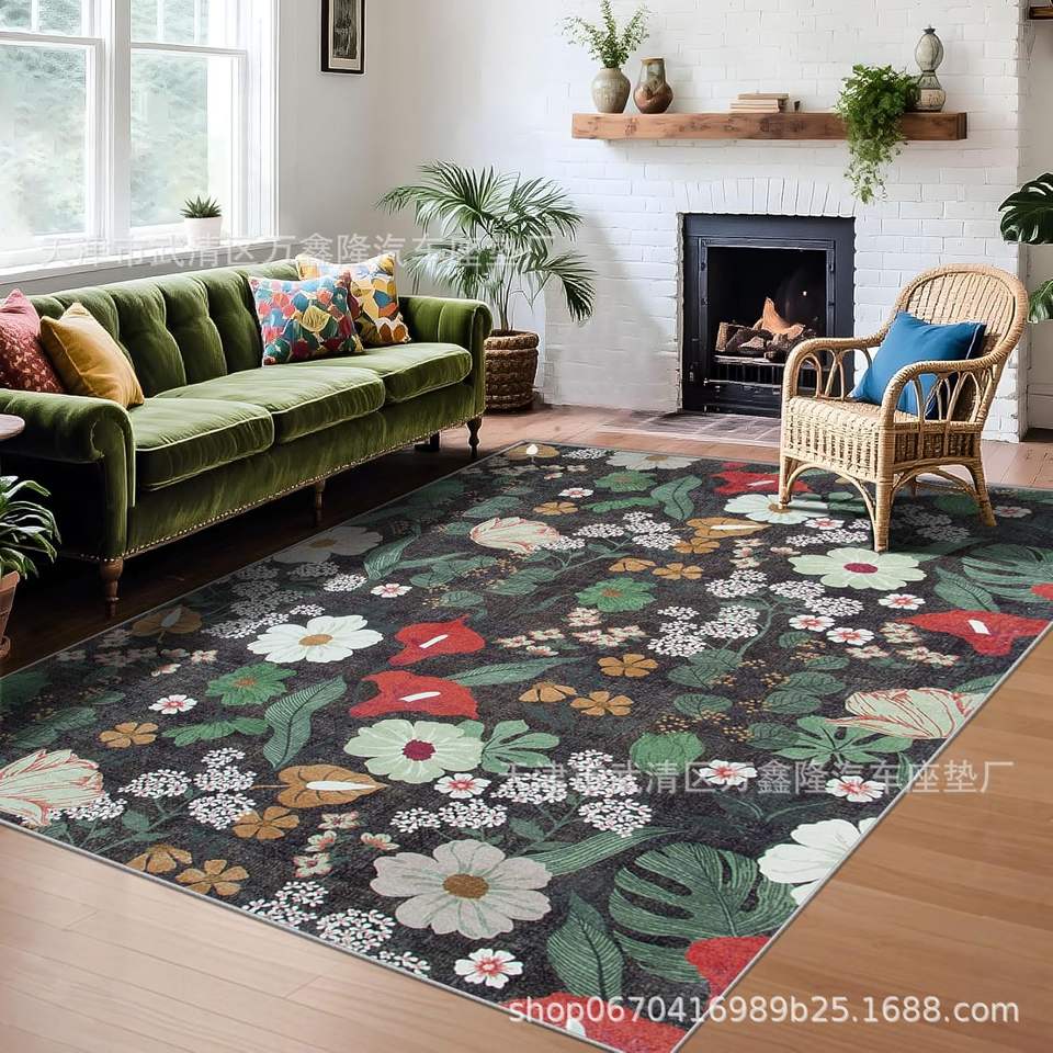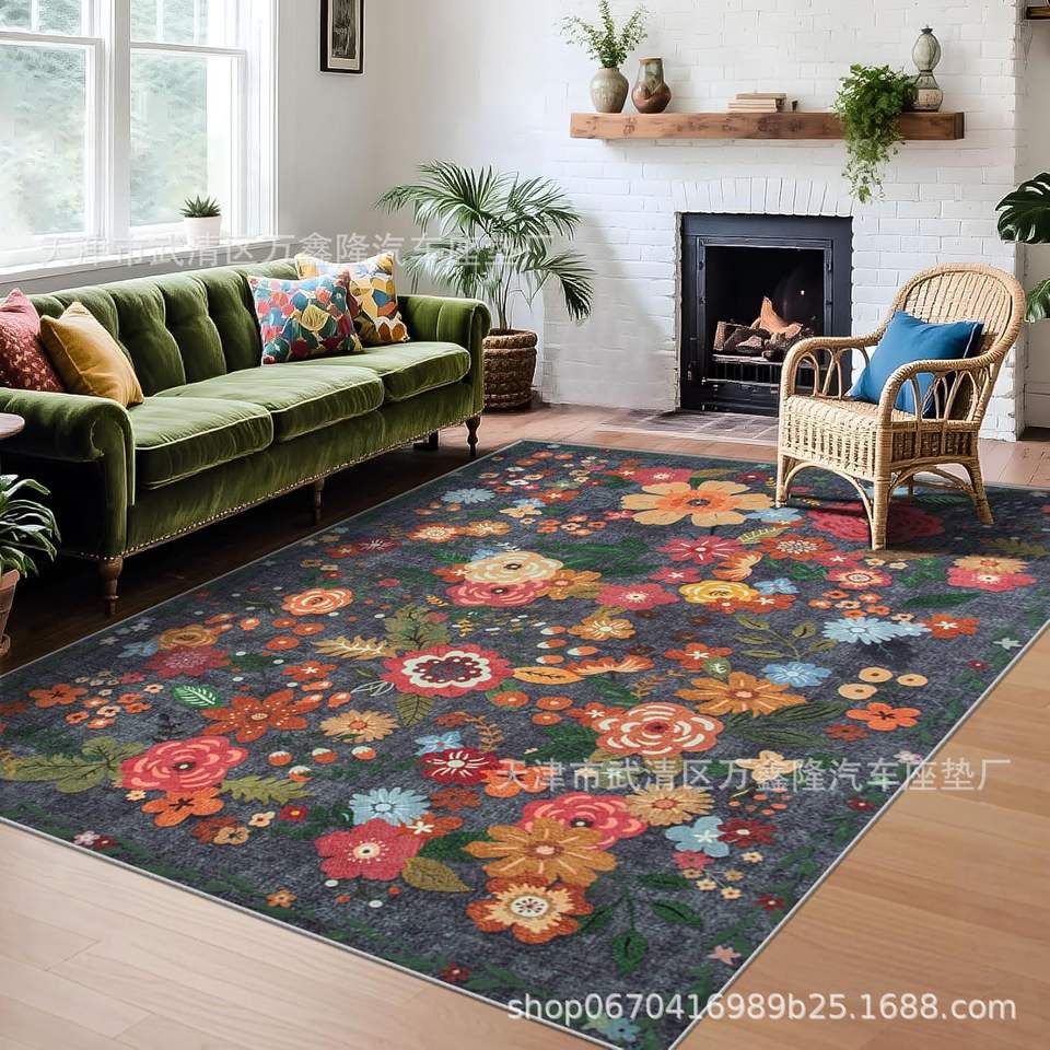 พรมลายดอกไม้ Wan Xinlong รูปทรงสี่เหลี่ยมผืนผ้า สไตล์โบฮีเมียน ซักได้ เหมาะสำหรับห้องนั่งเล่น วางข้างโซฟาหรือโต๊ะกาแฟ