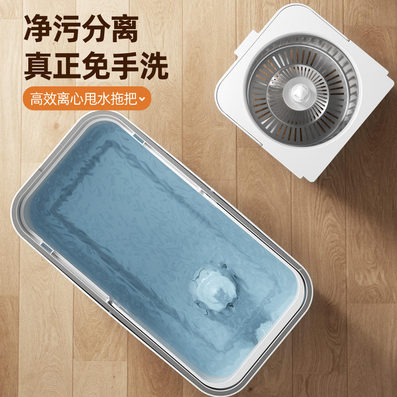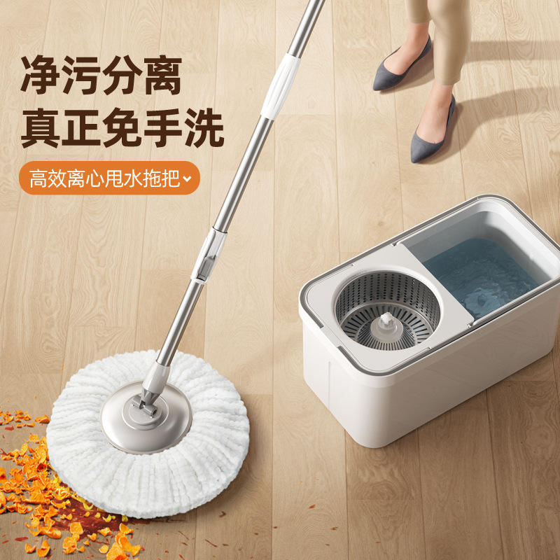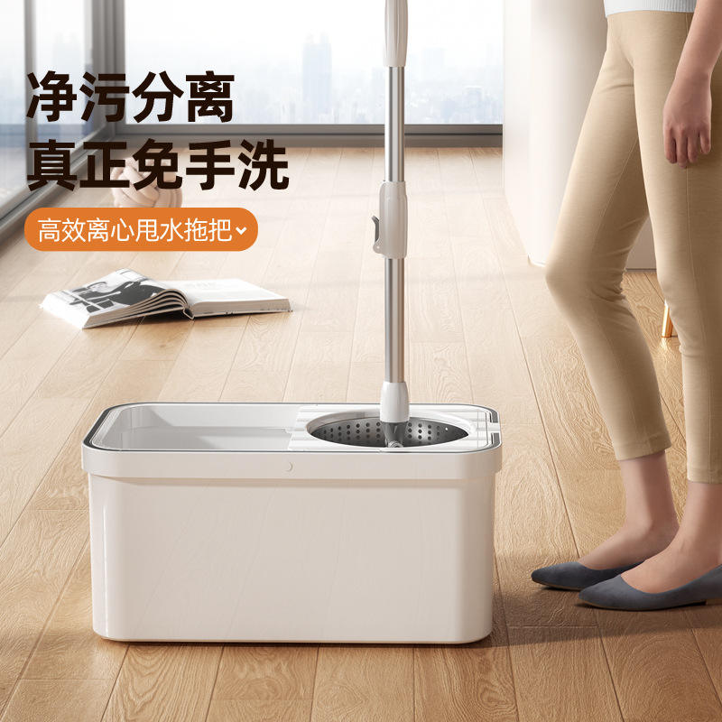 ไม้ถูพื้นแบบหมุนพร้อมถัง ไมโครไฟเบอร์ สีขาว อุปกรณ์ทำความสะอาดอัตโนมัติสำหรับใช้ในครัวเรือน