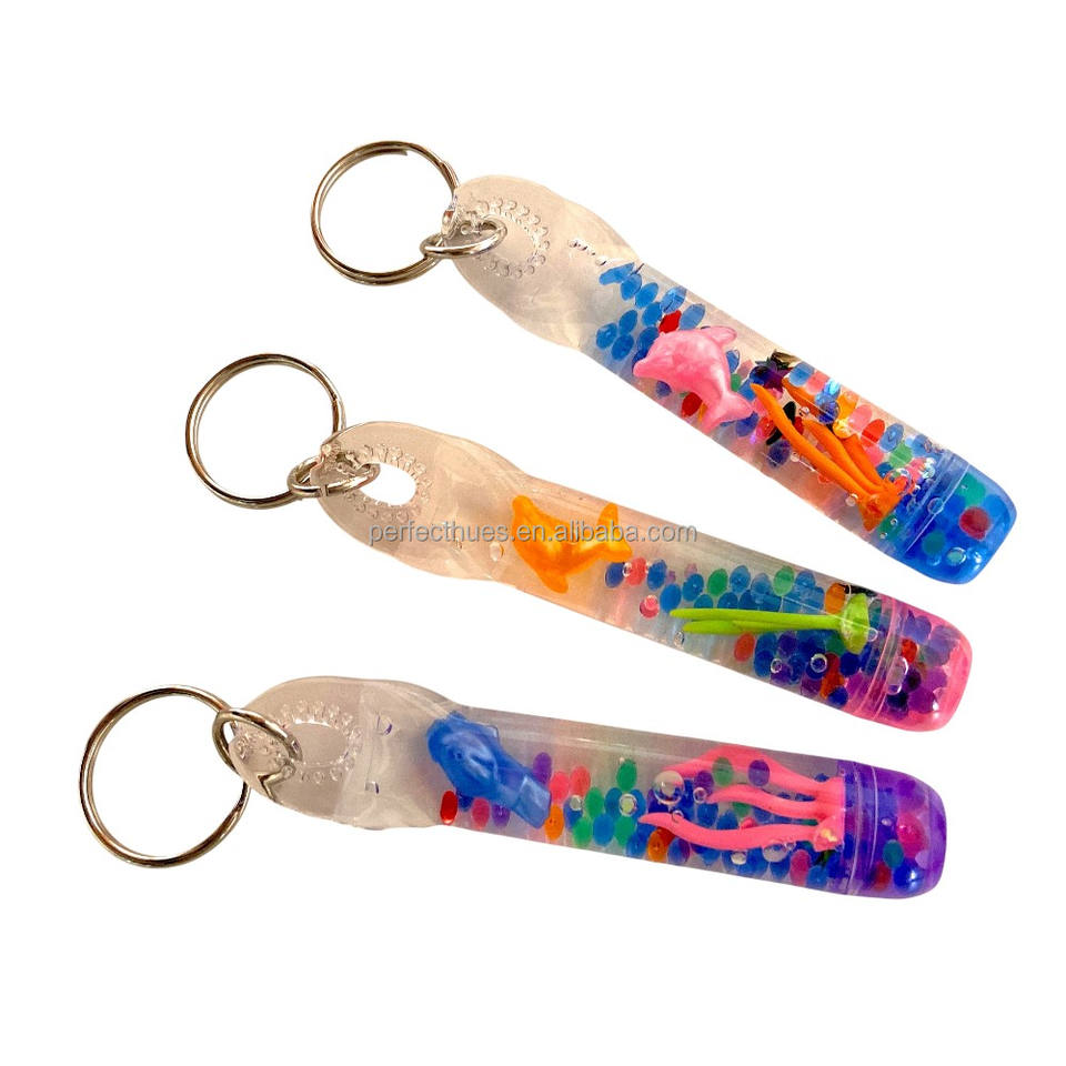 Description:acrylic liquid keychain with colored dolphin floats & beads
