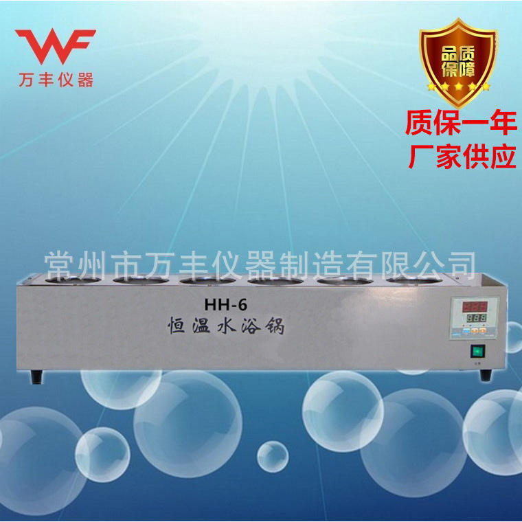 เครื่องควบคุมอุณหภูมิน้ำแบบแถวเดียว 6 รู รุ่น HH-S6 ยี่ห้อ Wanfeng Instruments พร้อมถังสแตนเลสสำหรับใช้ในห้องปฏิบัติการ