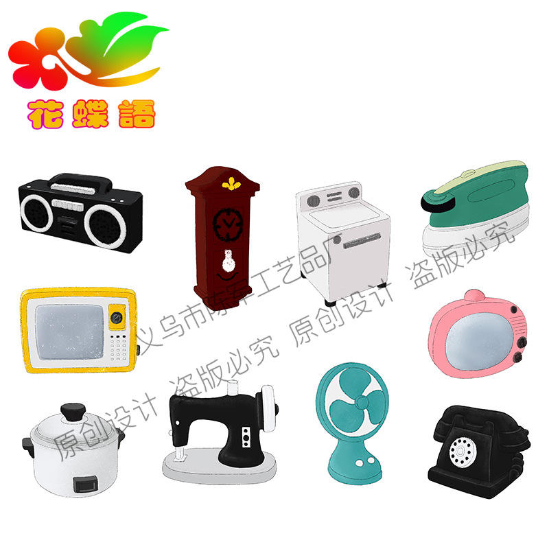 เครื่องใช้ไฟฟ้าในบ้านสไตล์เรโทร วันจินไล, ของตกแต่ง, ทีวีเรซิ่นสีดำขาว, วิทยุ, พัดลม, นาฬิกาแขวนผนัง, กล้องสไตล์ยุโรป