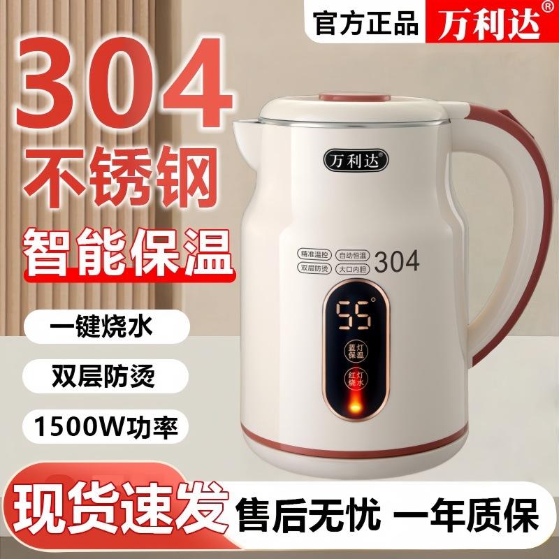 Wanlida Electric Kettle 1500W Fast Boil 304 Stainless Steel Automatic Shut Off Keep Warm Household Water Boiler