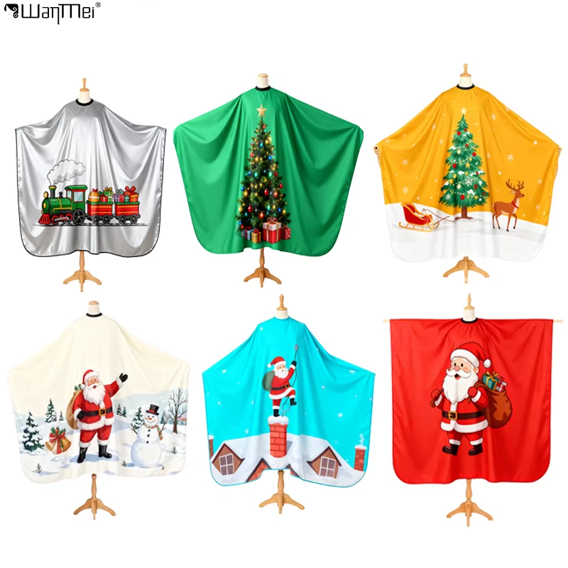 Wanmei ผ้าคลุมตัดผมสำหรับร้านตัดผมชุดทำผมคริสต์มาสแบบตามสั่ง