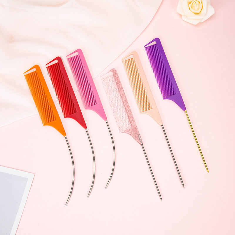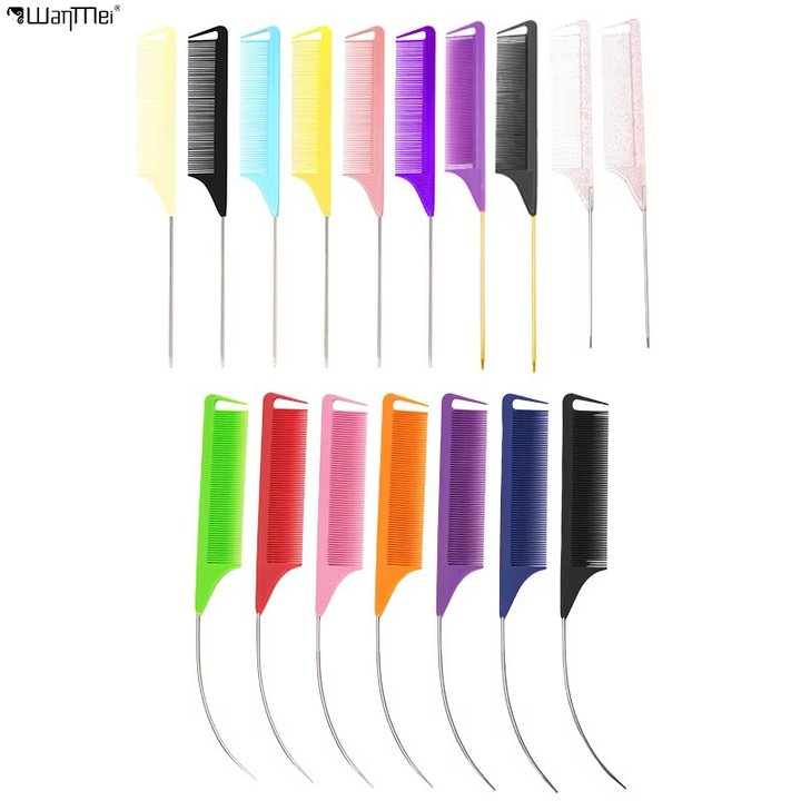 หวีจัดแต่งทรงผมแบบมืออาชีพ Wanmei ทนความร้อน ทำจากเหล็กและพลาสติก พร้อมหางจับแบบหางหนู สำหรับถักเปียและทำผมคาร์บอน