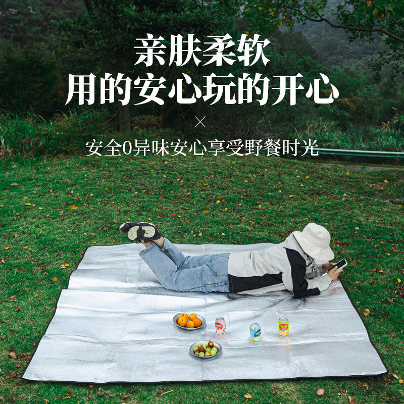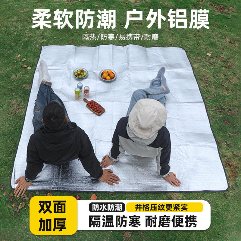 แผ่นรองปิกนิกกันน้ำสำหรับกิจกรรมกลางแจ้ง รูปทรงสี่เหลี่ยมผืนผ้า สองด้าน ทำจาก PVC และฟิล์มอลูมิเนียม ป้องกันความชื้น ใช้ได้ทุกฤดู เหมาะสำหรับการตั้งแคมป์