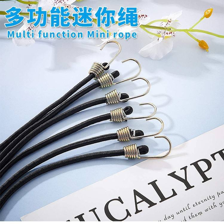 เชือกมินิ เชือกสีดำพร้อมตะขอสีดำ แพ็ค 10 ชิ้น