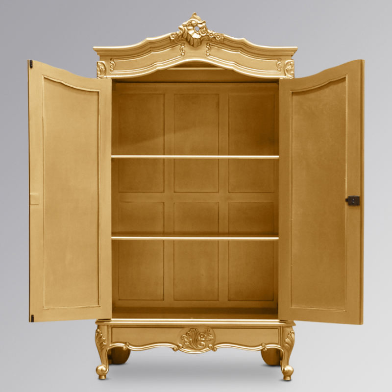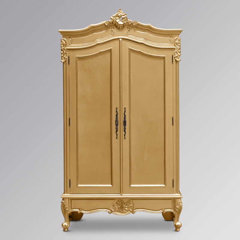 ตู้เสื้อผ้า 2 บาน ทำจากไม้มะฮอกกานีเนื้อแข็งคุณภาพสูง สีทอง เหมาะสำหรับใช้ในโรงแรม วิลล่า และห้องนอนภายในบ้าน