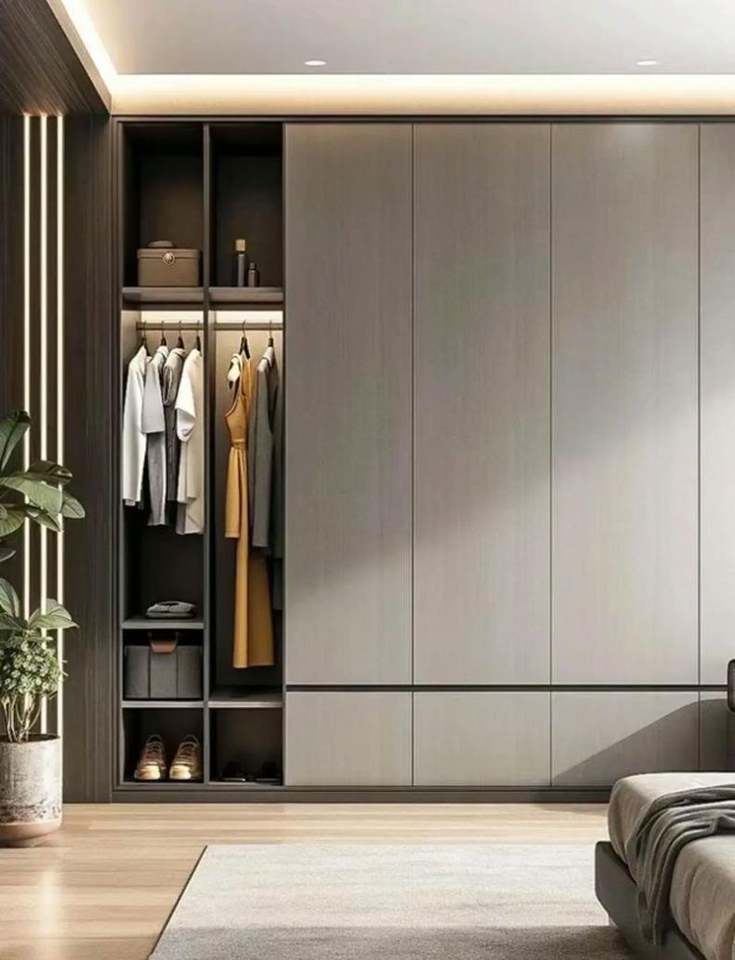 ตู้เสื้อผ้าบ้านห้องนอนเรียบง่ายทันสมัยน้ำหนักเบาหรูหราห้องเก็บเสื้อคลุมตู้แบบปรับแต่งได้รวมมุม