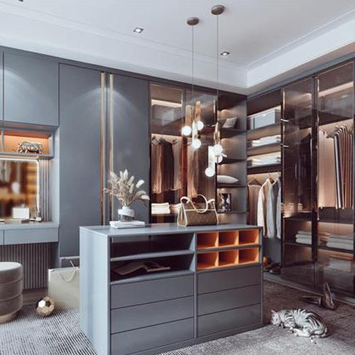 ตู้เสื้อผ้าบ้านห้องนอนเรียบง่ายทันสมัยน้ำหนักเบาหรูหราห้องเก็บเสื้อคลุมตู้แบบปรับแต่งได้รวมมุม