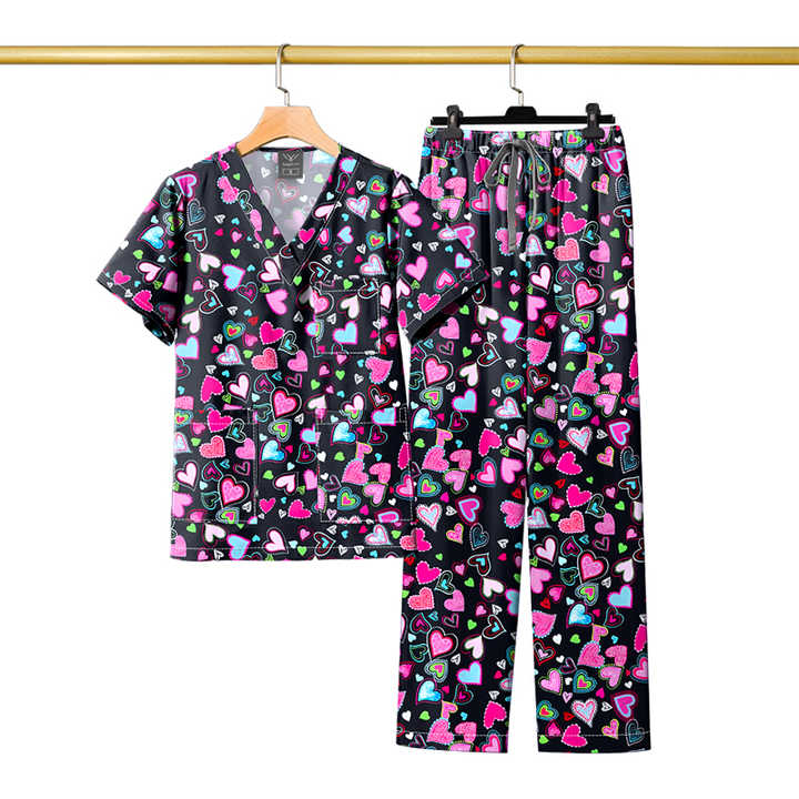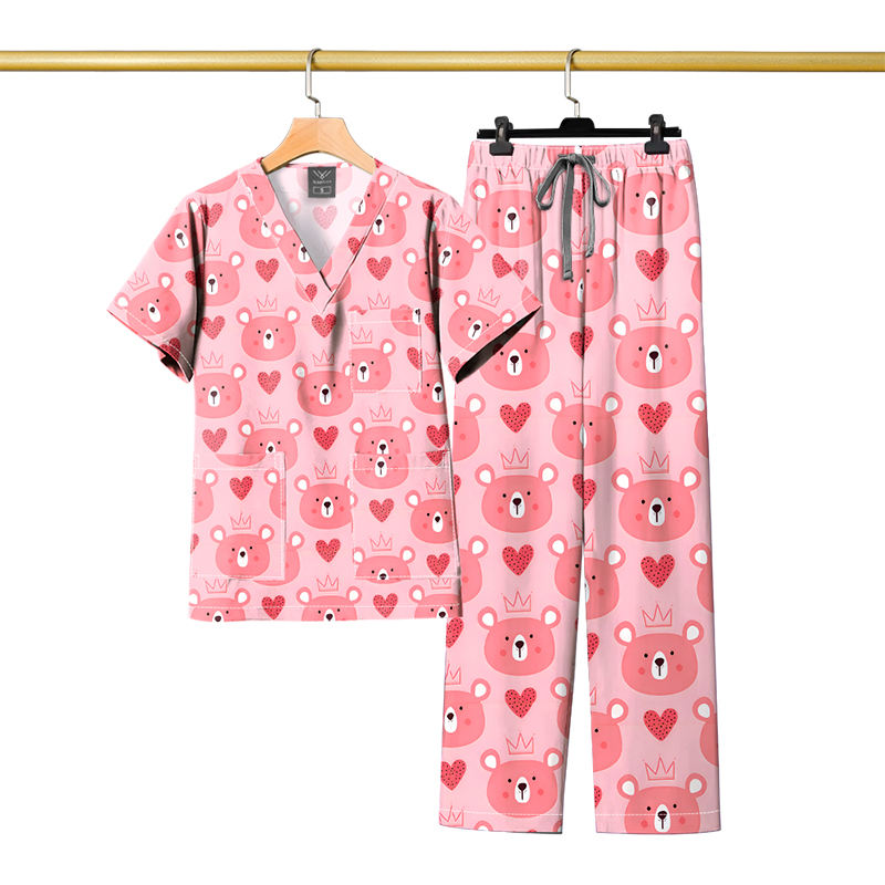 ชุดเครื่องแบบพยาบาลขาตรงมี3กระเป๋าด้านบนพิมพ์ลายสแปนเด็กซ์โพลีเอสเตอร์