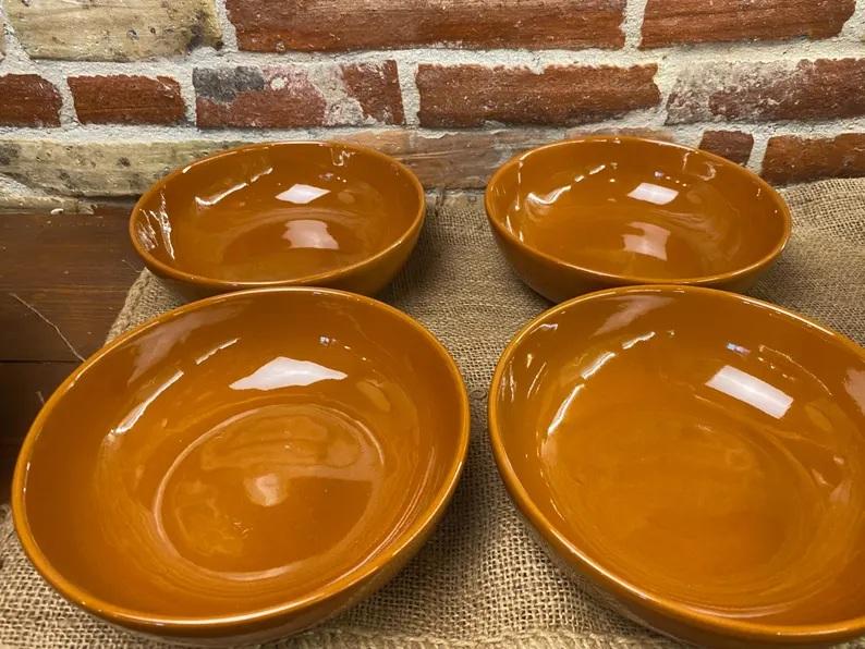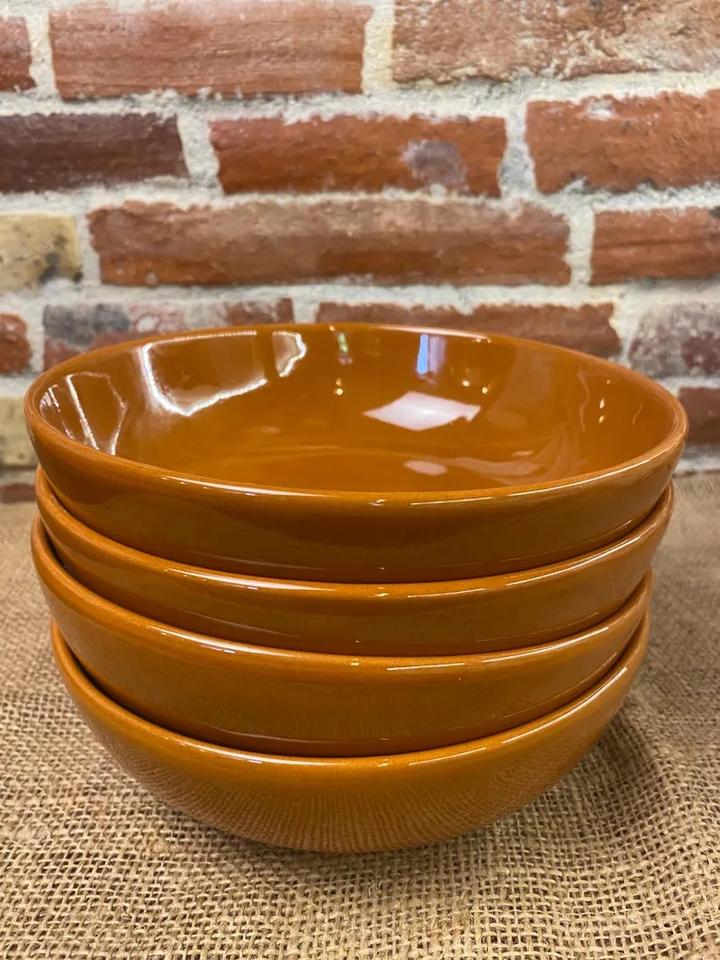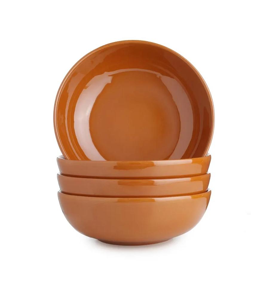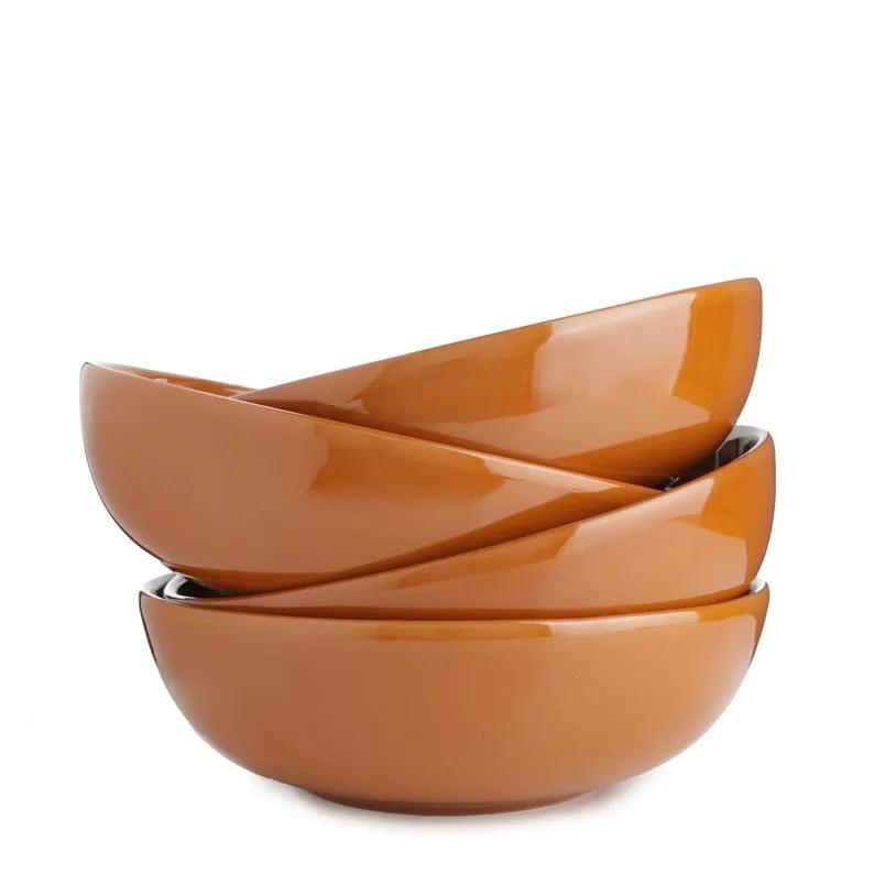 ชามเซรามิกเคลือบคาราเมลอุ่นๆ รูปทรงกว้างลึก เงางาม ทนทาน ปลอดภัยสำหรับอาหาร เหมาะสำหรับสลัดและพาสต้า