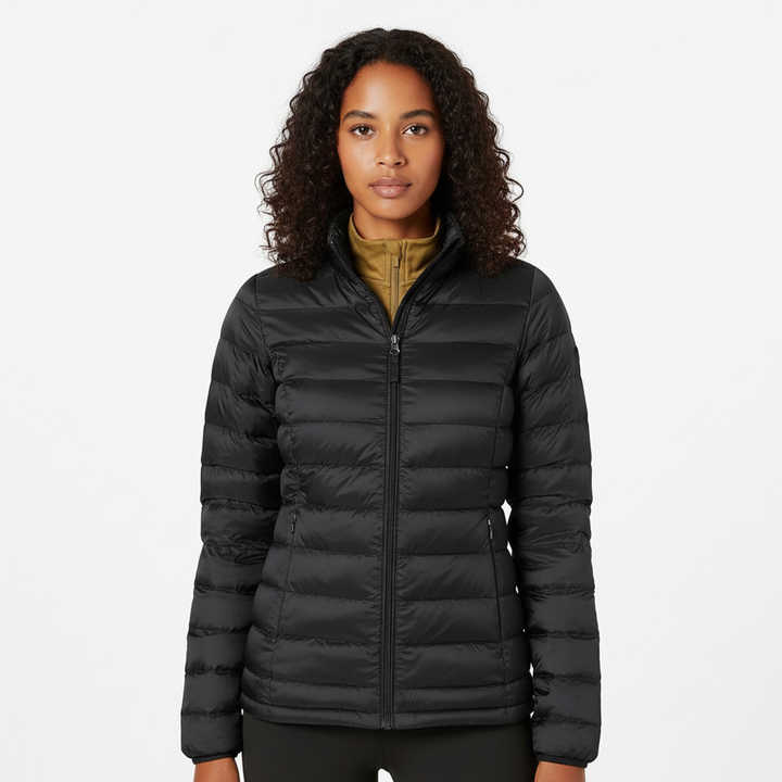 เสื้อแจ็คเก็ตพัฟเฟอร์ผู้หญิงแบบกำหนดเองได้ ทนทาน อุ่นสบาย ปักโลโก้ด้านหน้า ทรงทันสมัย กันน้ำ ระบายอากาศได้ดี ป้องกันความหนาวเย็นได้อย่างยอดเยี่ยม