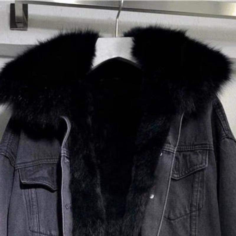 เสื้อแจ็คเก็ตยีนส์บุขนสัตว์อุ่นๆ เสื้อคลุมฤดูหนาว ติดกระดุมด้านหน้า มีกระเป๋าหน้าอก ผ้าหนา สไตล์สตรีทแวร์ แฟชั่นทันสมัย