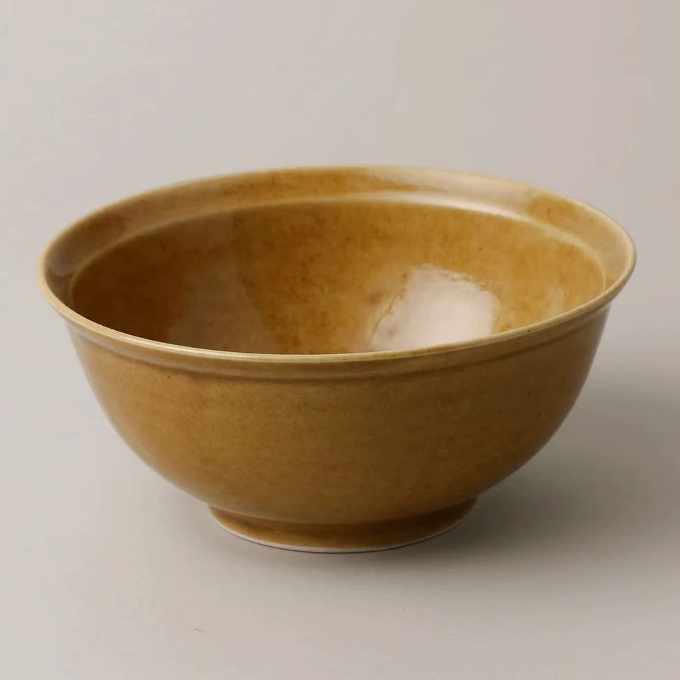 ชามเซรามิกเคลือบน้ำผึ้งอุ่น ดีไซน์ทรงกลมคลาสสิก ผิวเรียบเนียน ปลอดภัยสำหรับอาหาร แข็งแรง ทนความร้อน เหมาะสำหรับซุปและข้าว
