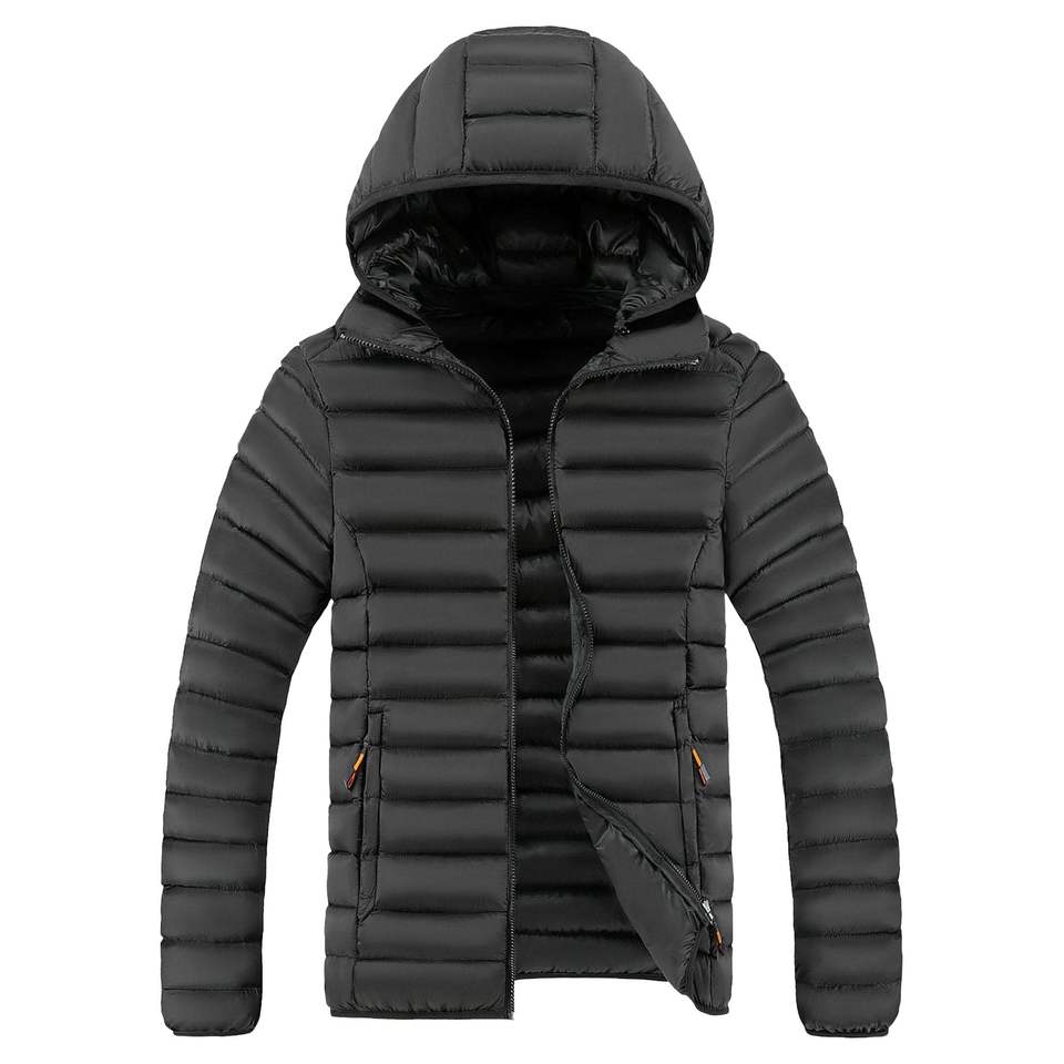 เสื้อแจ็คเก็ตพัฟเฟอร์แบบมีฮู้ด หนา ทรงเข้ารูป สไตล์ลำลอง สำหรับผู้ชาย เหมาะสำหรับใส่กลางแจ้ง