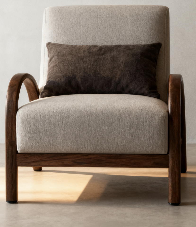 Elegant curved solid wood arm design, soft upholstered seat and back, luxury craftsmanship, removable cushion, ergonomic comfortลักษณะ