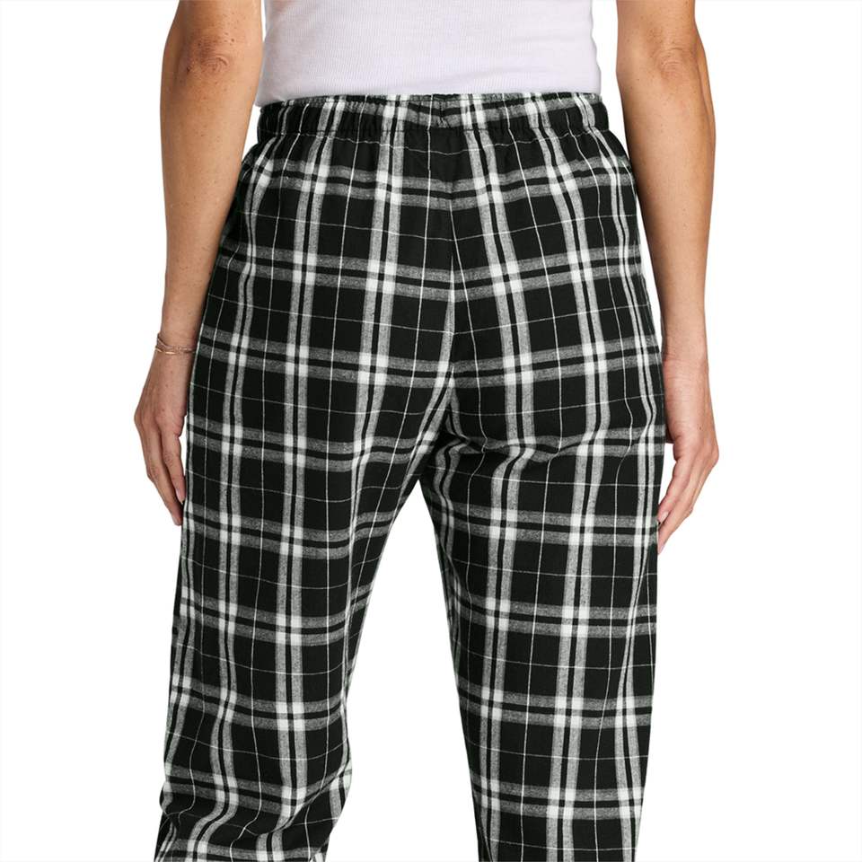 ชุดนอนผ้าสักหลาดลายสก็อตสีดำสำหรับผู้หญิงอบอุ่น-กางเกงเลานจ์ลายตารางคลาสสิกสำหรับฤดูหนาวเหมาะสำหรับใส่นอนและสวมใส่สบายๆ