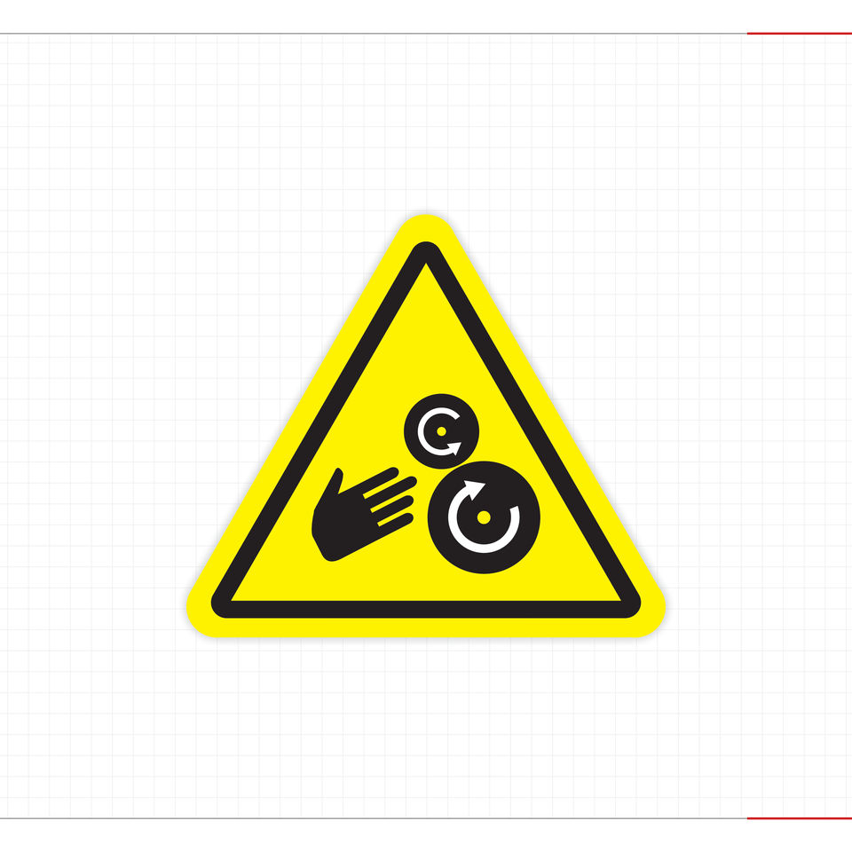 ป้ายเตือนความปลอดภัยสำหรับลูกกลิ้งที่เคลื่อนที่และชิ้นส่วนที่หมุนได้ สติกเกอร์อุตสาหกรรมสำหรับอันตรายจากการดึงและกระแทก