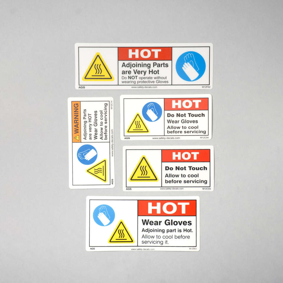 สติกเกอร์และป้ายเตือนความปลอดภัยสำหรับพื้นผิวที่ร้อนและกันน้ำ ทนความร้อน สำหรับอุปกรณ์เครื่องจักรอุตสาหกรรม ความปลอดภัยในสถานที่ทำงาน