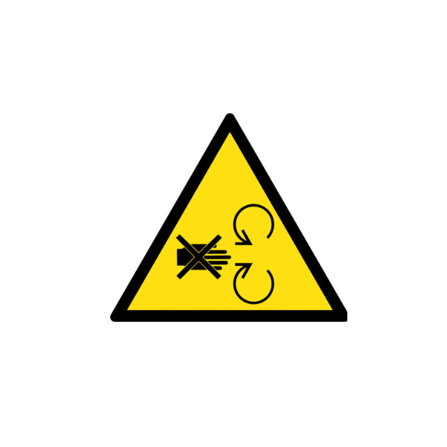 Warning sign: danger of moving rolls PVC 100x100mm