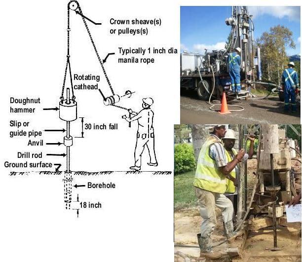 การทดสอบดิน SPT การเก็บตัวอย่างดิน การทดสอบการแทรกซึมมาตรฐาน