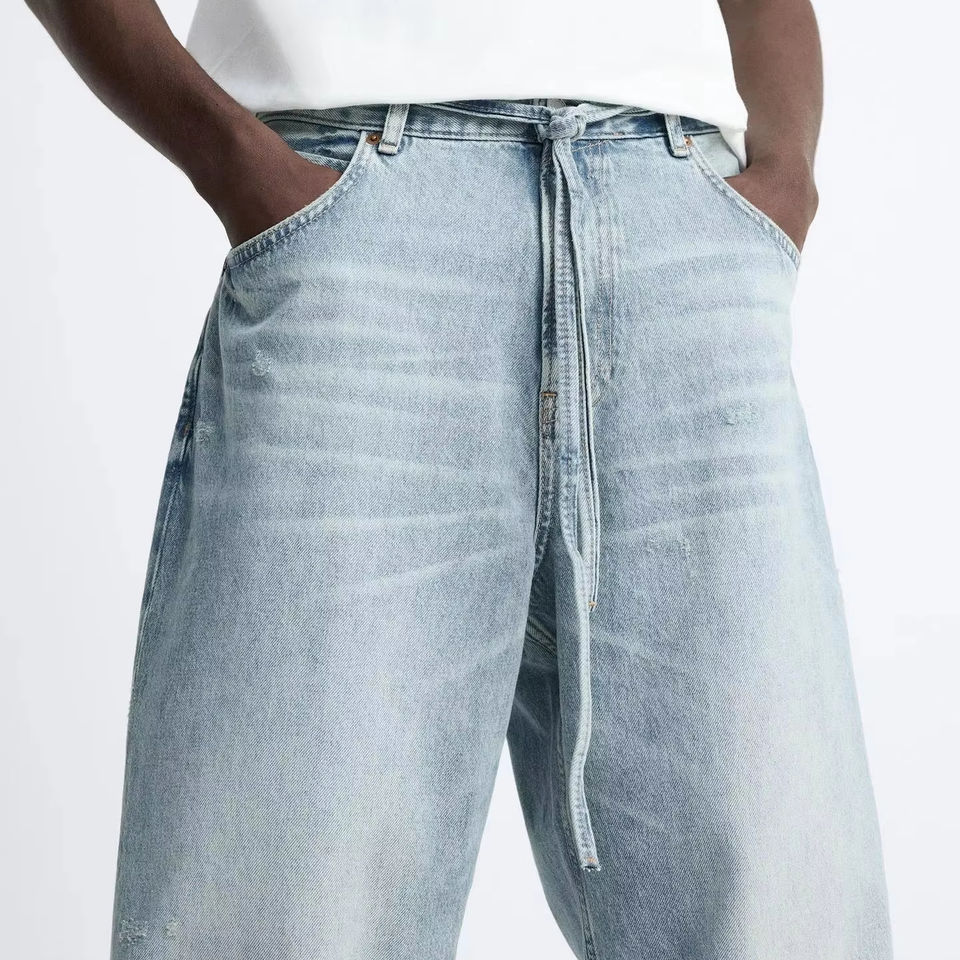 กางเกงยีนส์ทรงตรงขากว้างไซส์ใหญ่สำหรับผู้ชาย สไตล์วอช แบบหลวมๆ สั่งทำได้ พร้อมปักโลโก้ กางเกงยีนส์เดนิมแฟชั่นสำหรับผู้ชาย