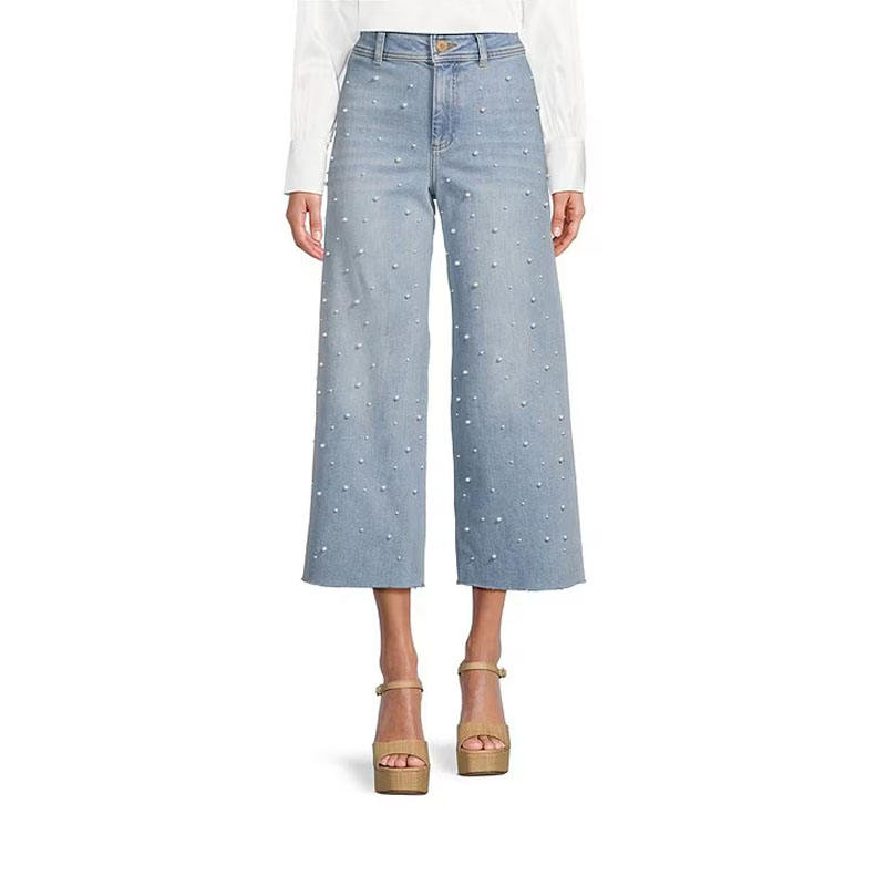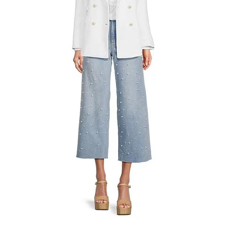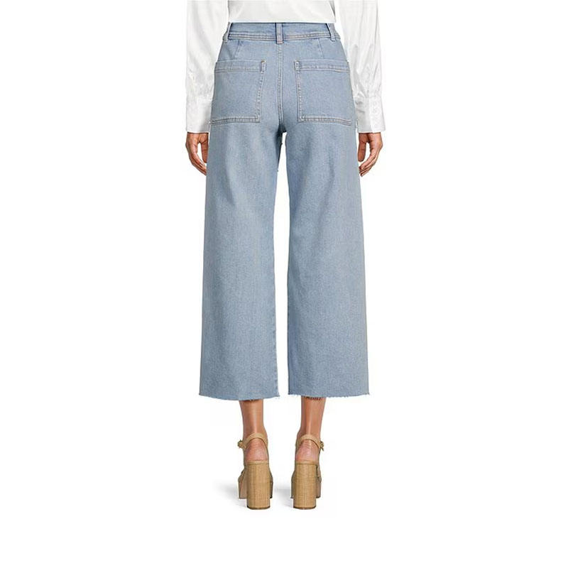 กางเกงยีนส์ขาบานทรงครอปสำหรับผู้หญิง รุ่น Wash พร้อมดีเทลมุก ดีไซน์เอวสูง สไตล์ลำลอง ราคาขายส่ง