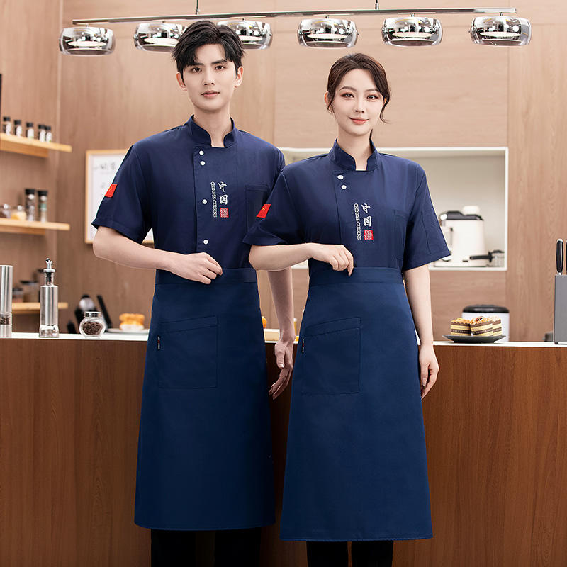 เสื้อแจ็คเก็ตเชฟแขนสั้นสีดำขาวสำหรับร้านอาหารชุดพนักงานโรงแรมมีซิปซักได้