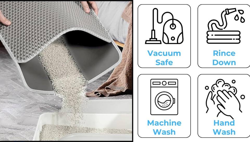 เสื่อทรายแมวสองชั้นขนาด75*55ซม. เสื่อสัตว์เลี้ยงอีวาแบบซักได้ทนทานกันการติดตามพิมพ์ลายรังผึ้งกันน้ำ