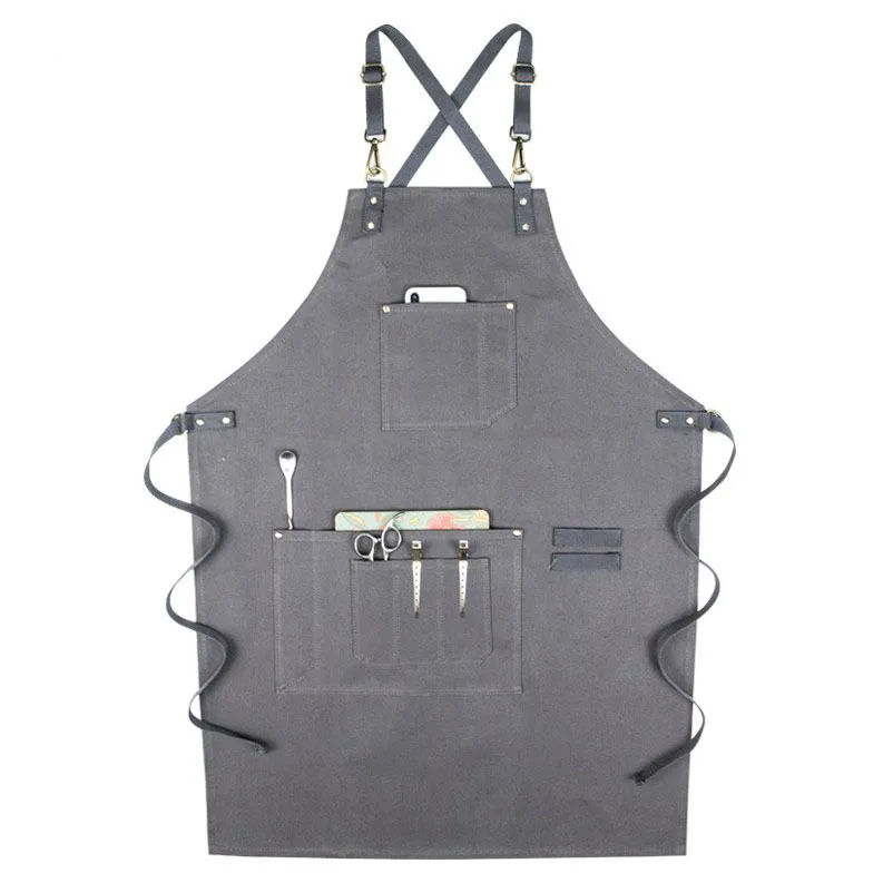 ผ้ากันเปื้อนผ้าใบซักได้ผ้ากันเปื้อนผ้าใบหนาลายนูนสำหรับโรงงานร้านกาแฟแฟชั่นเกาหลี