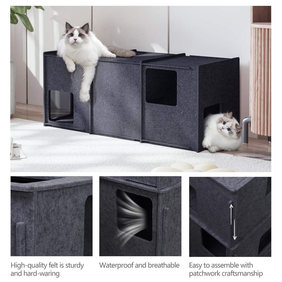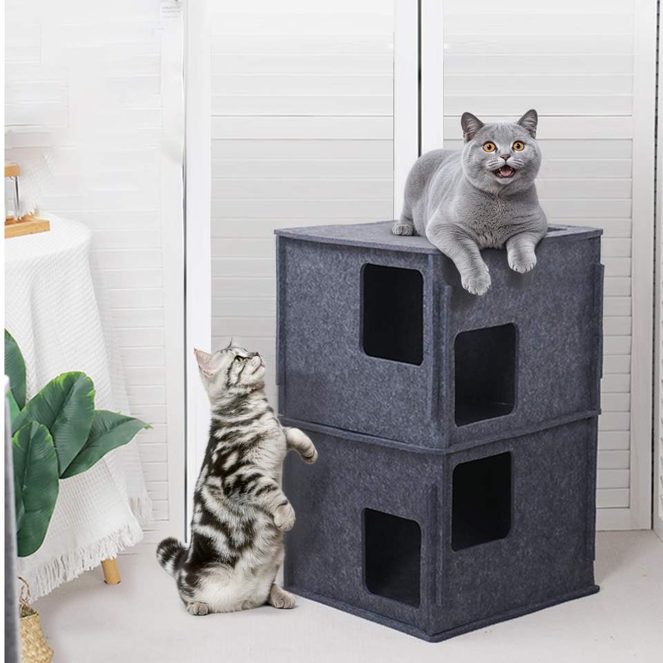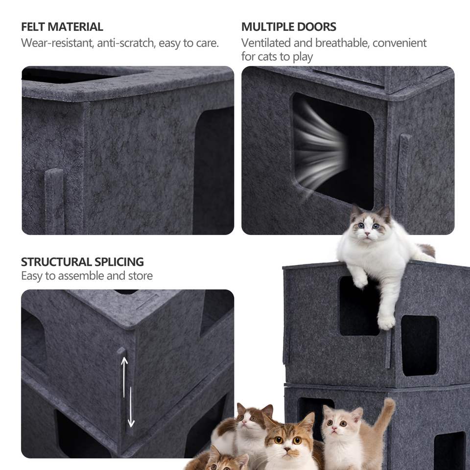 Peekaboo บ้านแมวบ้านทรงสี่เหลี่ยมถ้ำที่ซ่อนของแมวทนทานถอดออกได้รู้สึกว่าอุโมงค์แมวบ้านสำหรับในร่ม