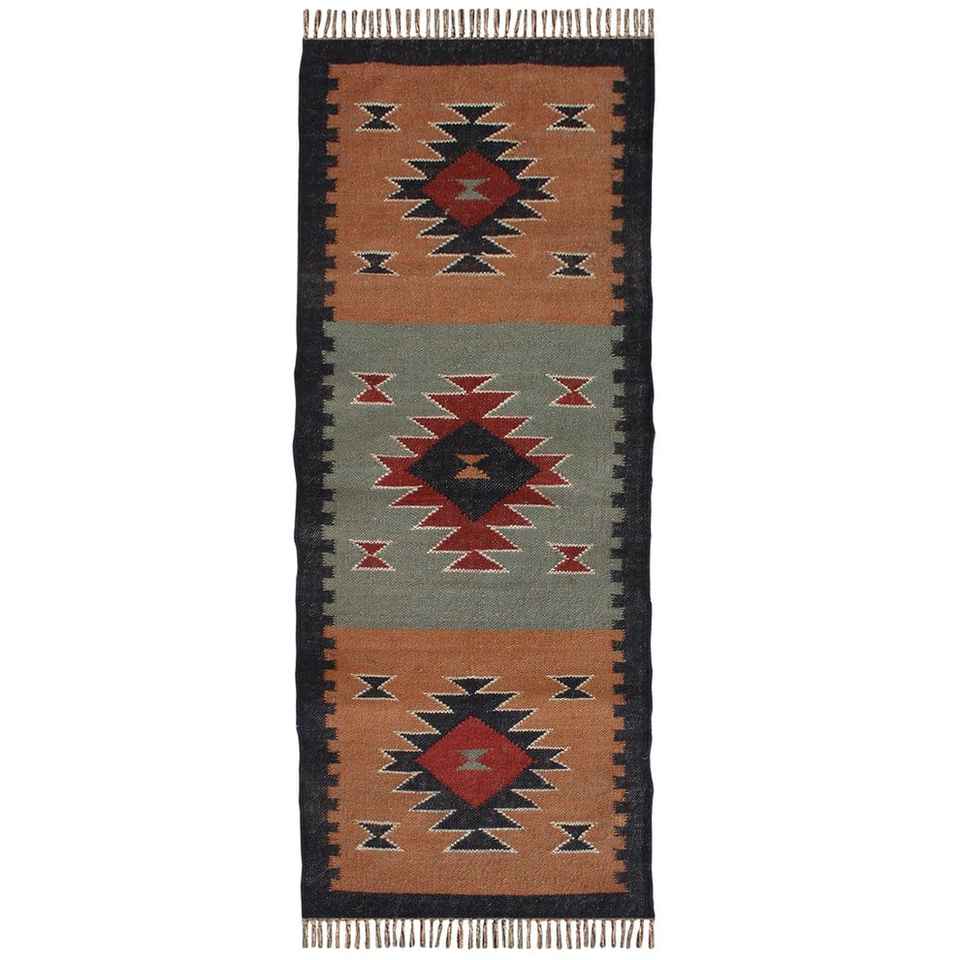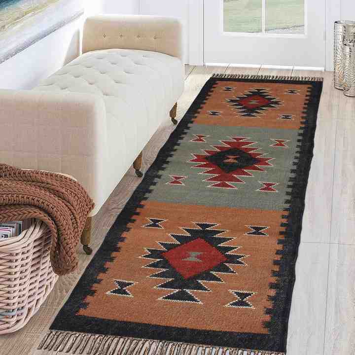 พรมคิลิมทอมือจากปอกระเจาผสมขนสัตว์ สำหรับตกแต่งพื้นห้องนั่งเล่น ห้องนอน และห้องทำงาน ซักทำความสะอาดได้และมีสไตล์