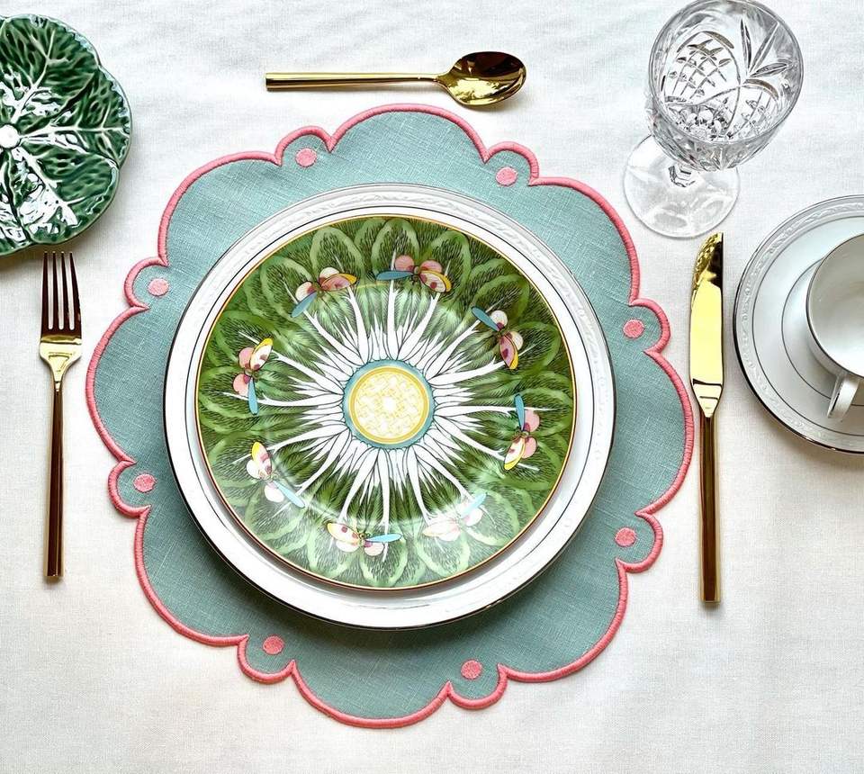 แผ่นรองจานผ้าลินินปักทำด้วยมือซักได้พร้อมงานปักที่ทนทานยาวนานตัวเลือกสำหรับการรับประทานอาหารที่บ้าน