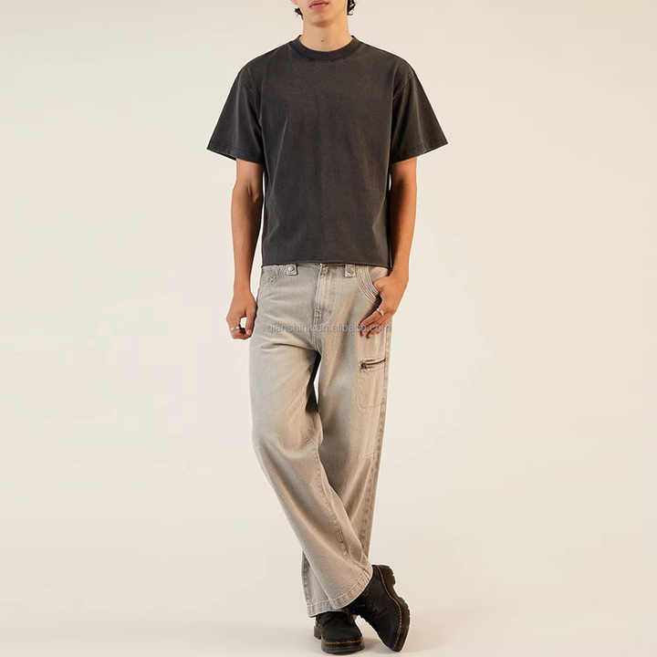 เสื้อครอปสำหรับผู้ชายฟอกสีดำเสื้อยืดผ้าฝ้ายหนาแบบหรูหราเสื้อยืดออกแบบได้ตามต้องการขนาดใหญ่สไตล์วินเทจ
