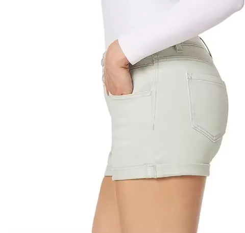 กางเกงยีนส์ขาสั้นสีน้ำเงินฟอกสำหรับผู้หญิง สไตล์วัยรุ่น ติดกระดุม ทรงสกินนี่ ผ้ายืด/ผ้าฝ้าย สวมใส่สบาย