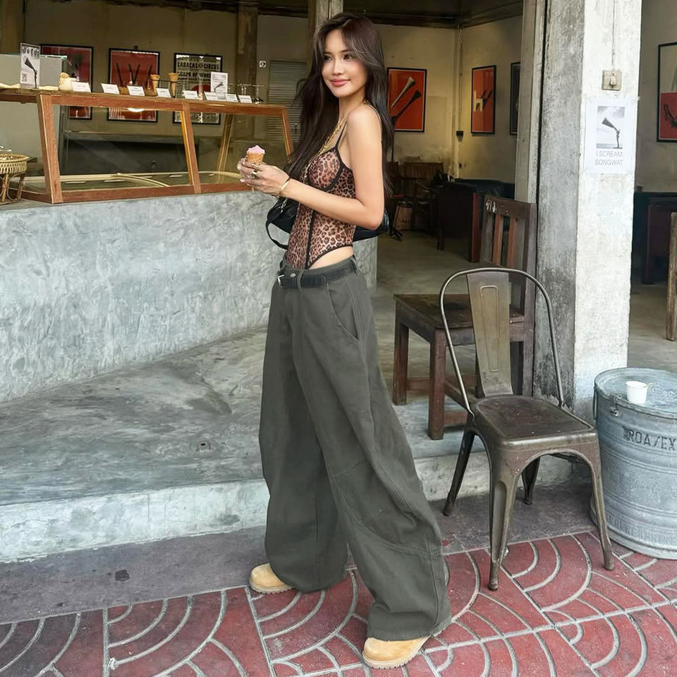 กางเกงยีนส์เดนิมทรงขากว้างเอวกลางทรงตรงหลวมสไตล์ลำลองสตรีทแวร์แมทช์ได้กับทุกชุดสไตล์เรโทร