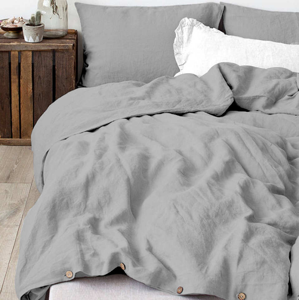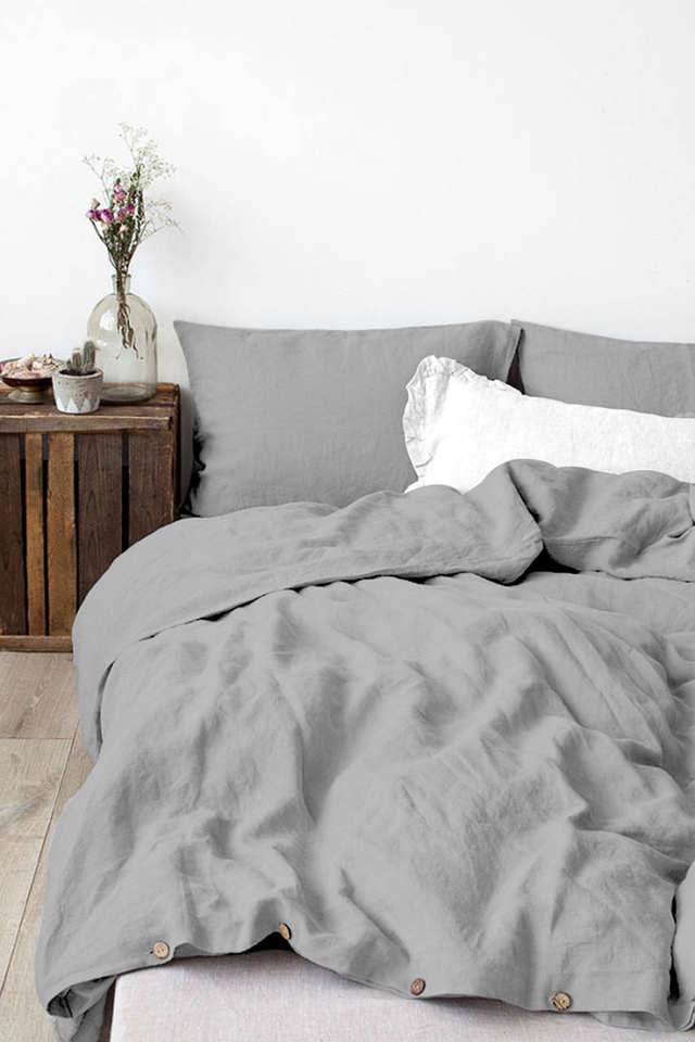ชุดผ้าห่มนวมสีเทาซักแล้ว 100% ผ้าฝ้าย พร้อมปลอกหมอนเข้าชุดสองใบ ขนาดผ้านวมสั่งทำพิเศษ เนื้อผ้านุ่ม สำหรับตกแต่งห้องสไตล์โมเดิร์น