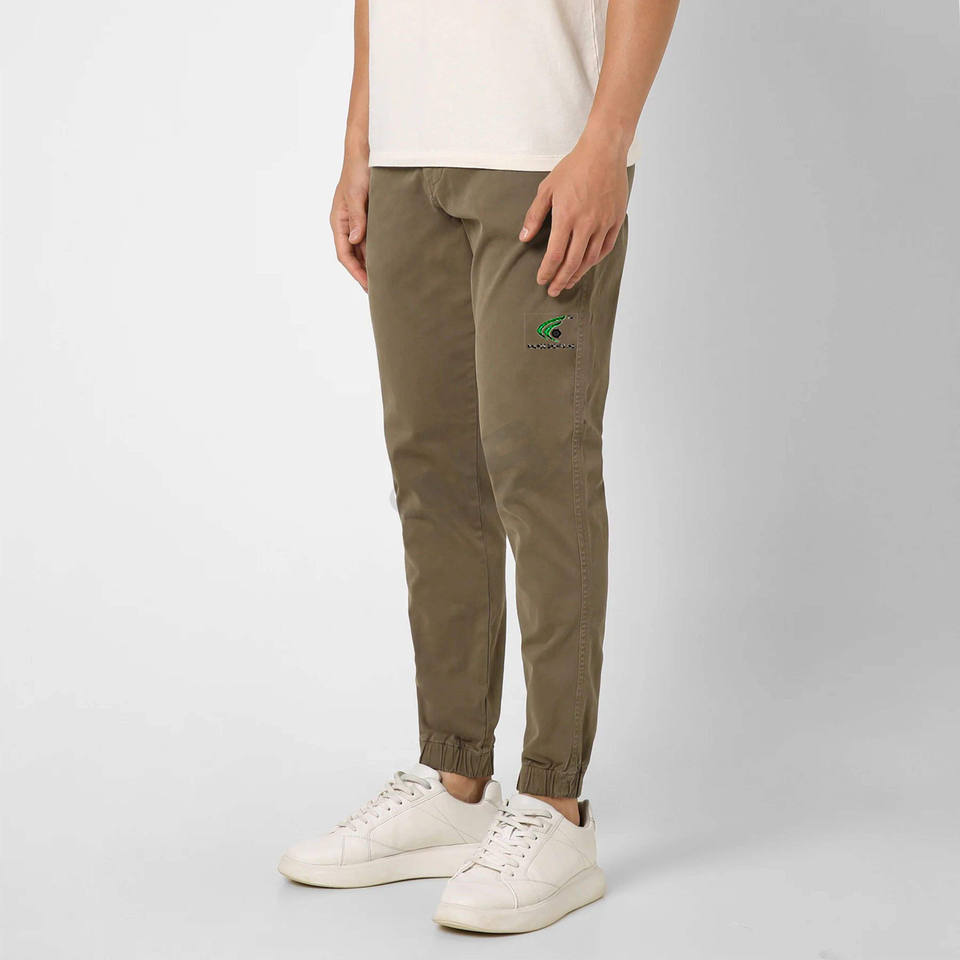 กางเกงผู้ชายผ้าฝ้ายฟอกสีเย็บปะติดโลโก้ตามสั่งผลิตจากโรงงาน