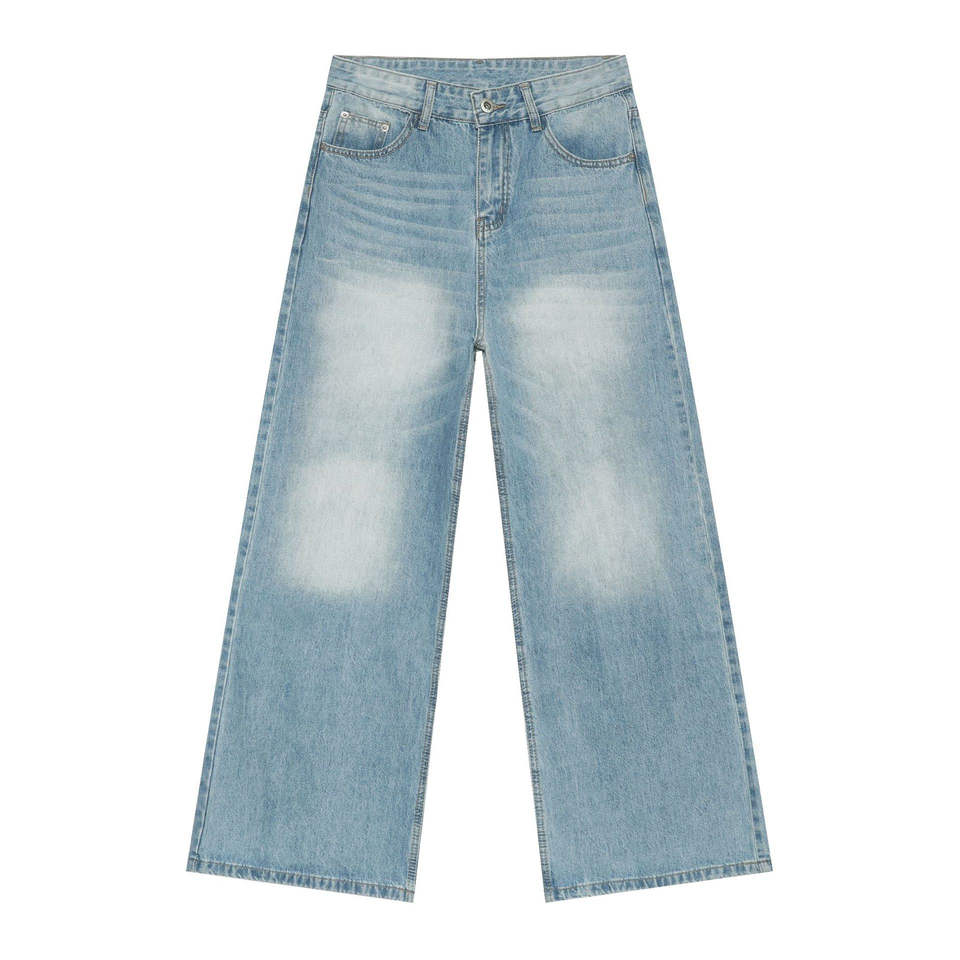 กางเกงยีนส์ทรงหลวมสไตล์วินเทจสำหรับผู้ชาย แฟชั่นเดนิมขาตรงทรงกว้าง