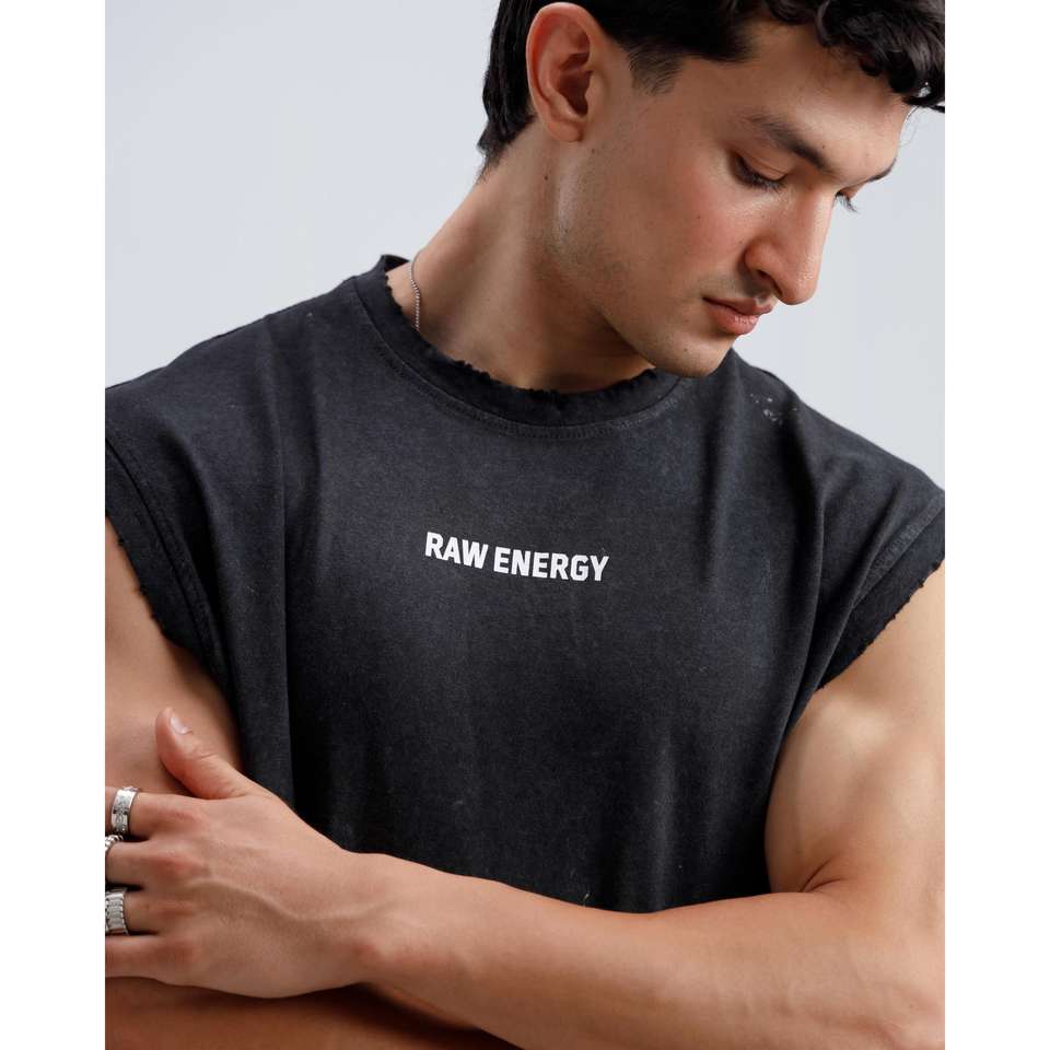 เสื้อยืดแขนกุดผ้าฝ้าย 100% รุ่น Washed Raw Energy