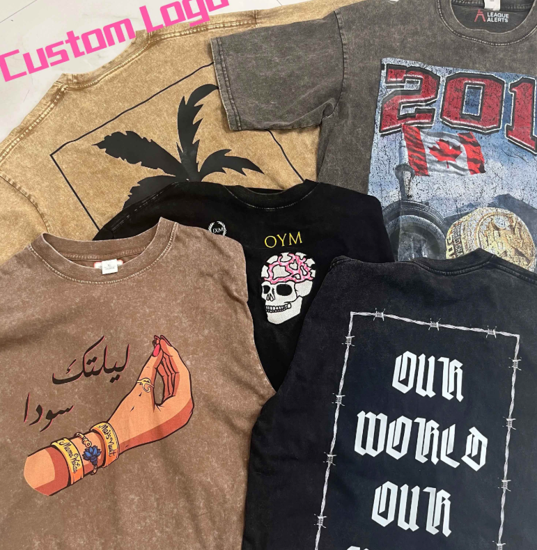เสื้อยืดคอตตอนทรงหลวมสไตล์เรโทรพิมพ์ลายแบบกำหนดเอง