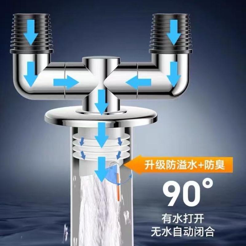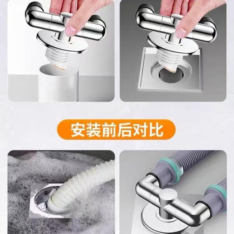 ข้อต่อท่อระบายน้ำเครื่องซักผ้าแบบติดพื้น ABS ชุบโครเมียม 90 องศา ป้องกันกลิ่น ป้องกันน้ำล้น ท่อแนวนอน