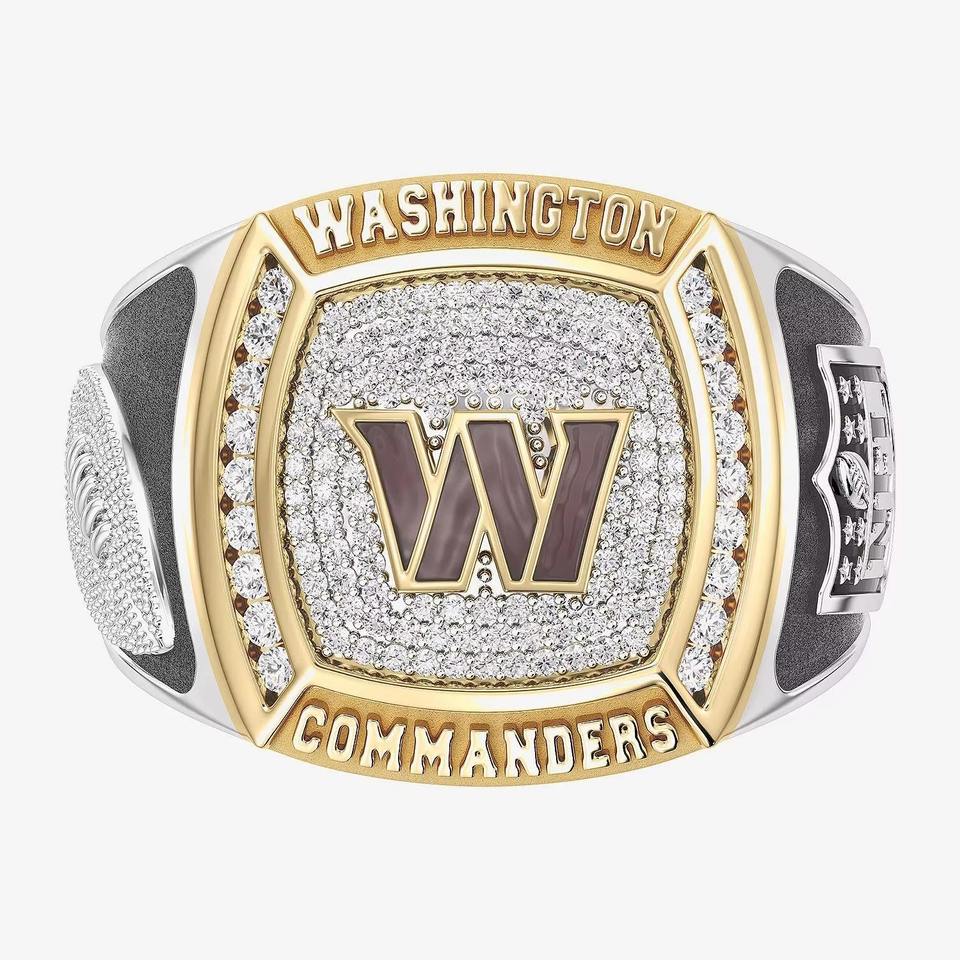 แหวนแชมป์ทีมวอชิงตัน คอมมานเดอร์ส ทำจากโลหะผสมประดับเพชรโมอิสซาไนต์ VVS ปรับแต่งได้เต็มที่ แฟชั่นฮิปฮอปสำหรับผู้ชาย สองสี แบบสั่งทำพิเศษสำหรับโรงเรียนมัธยม