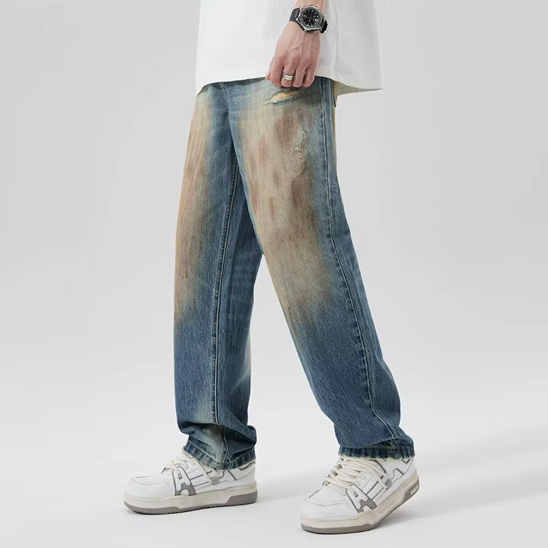 กางเกงคาร์โก้ยีนส์สีเหลืองสไตล์วินเทจ ทรงตรง ซักฟอกแล้ว ระบายอากาศได้ดี เอวกลาง เหมาะสำหรับฤดูใบไม้ร่วงและฤดูหนาว