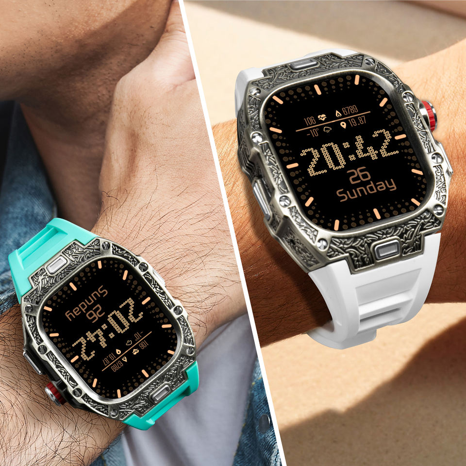 สายนาฬิกาซิลิโคนสีขาวนุ่ม49มม. พร้อมเคส
