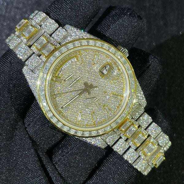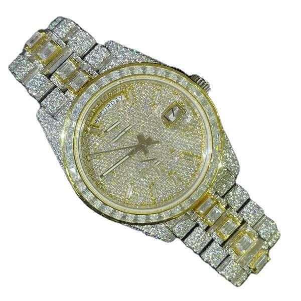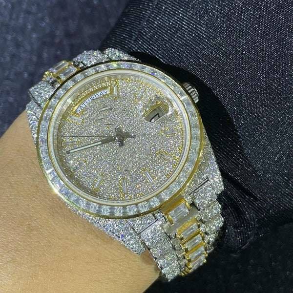 นาฬิกากลไกอัตโนมัติเพชรเต็มรูปแบบสไตล์ฮิปฮอปสุดหรูทำจากหินโมิสซาไนท์น้ำแข็งทรงบาแกตต์ตัดขนาด20มม. ทำจากสแตนเลส