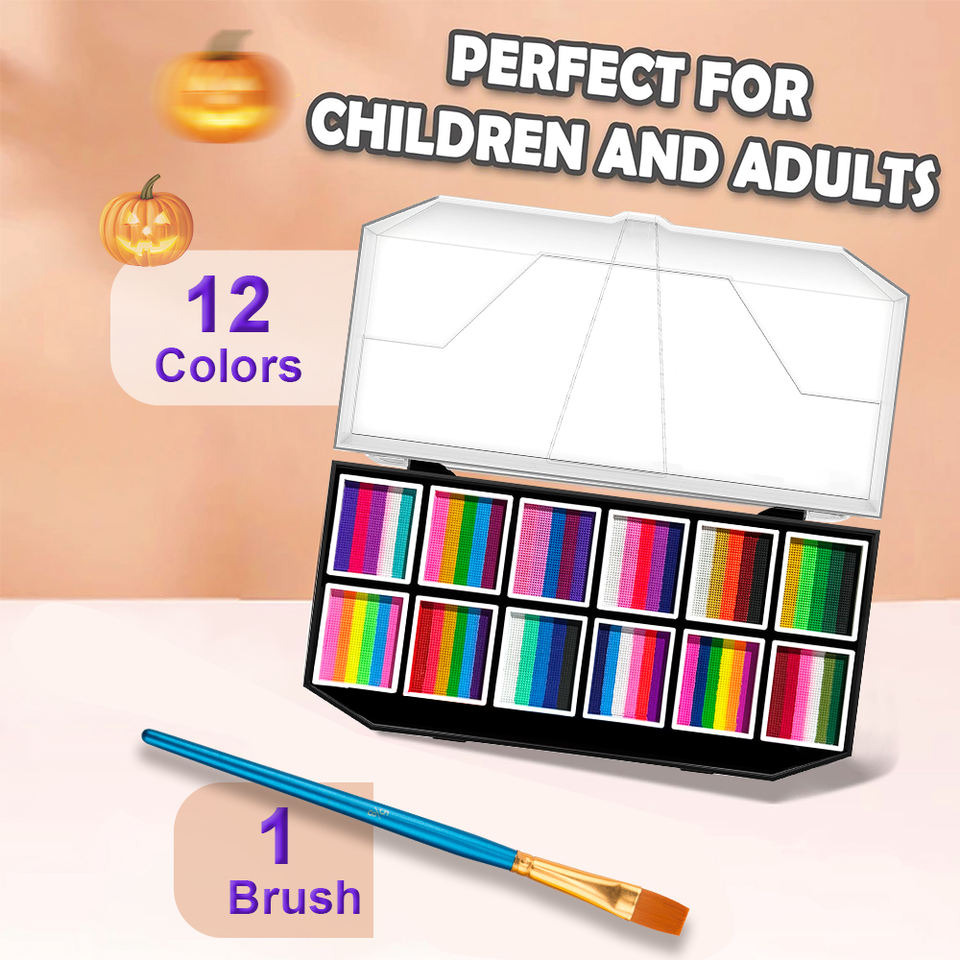 ภาพวาดใบหน้า, ภาพวาดร่างกาย, แต่งหน้าฮาโลวีน, ชุดทาสีใบหน้า, สีทาตัวยูวี, สีเรืองแสงในที่มืด, ลายฉลุวาดใบหน้า, เครื่องสำอางโรงละคร, ภาพวาดเทศกาล, สีคอสเพลย์ลักษณะ