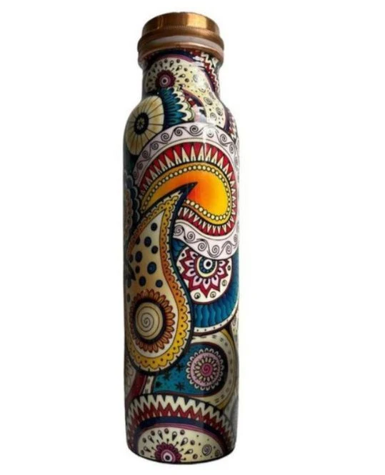 ขวดน้ำทองแดงงานหัตถกรรมขวดทองแดงแกะสลักแบบเต็มรูปแบบสไตล์อินเดีย