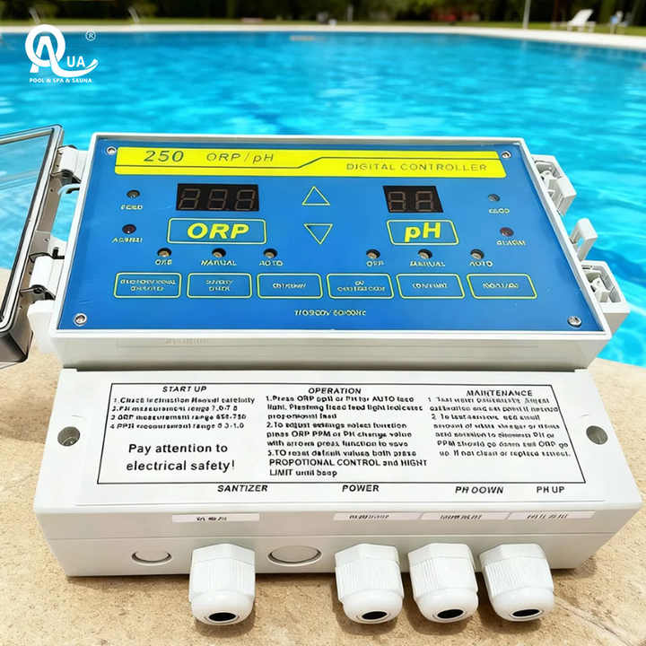 เครื่องวัดคุณภาพน้ำในสระว่ายน้ำแบบดิจิตอล ยี่ห้อ Water Crown สำหรับสระว่ายน้ำเชิงพาณิชย์ วัดค่า pH และคลอรีน